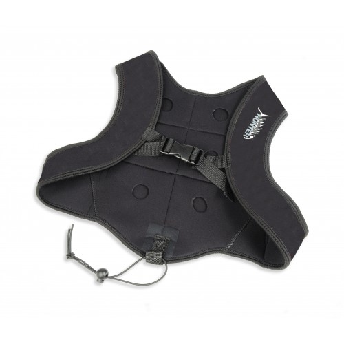 Dotato di 6 tasche porta piombi con clip di fissaggio sternale e clip di fissaggio in cintura (fornito senza zavorra)