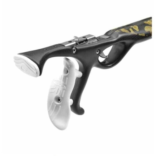 Il calciolo in carbonio integrato è dotato di appoggio in materiale plastico morbido che permette una maggiore stabilità in fase di caricamento. Il fusto del fucile è inoltre dotato di una sede apposita per l’alloggiamento del mulinello C4 Hercules