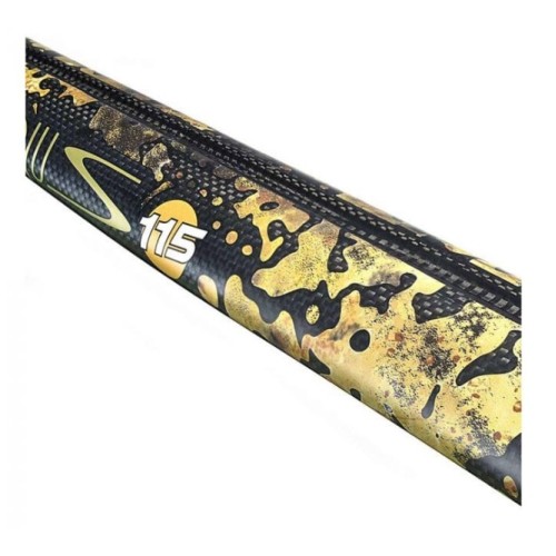 Ne misure 105-110cm il fucile viene fornito con asta america da 6,75mm con pinnette e un elastico da 16mm e uno da 14mm.